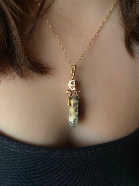 Skull and Brass Crazy Lace Agate Pendant