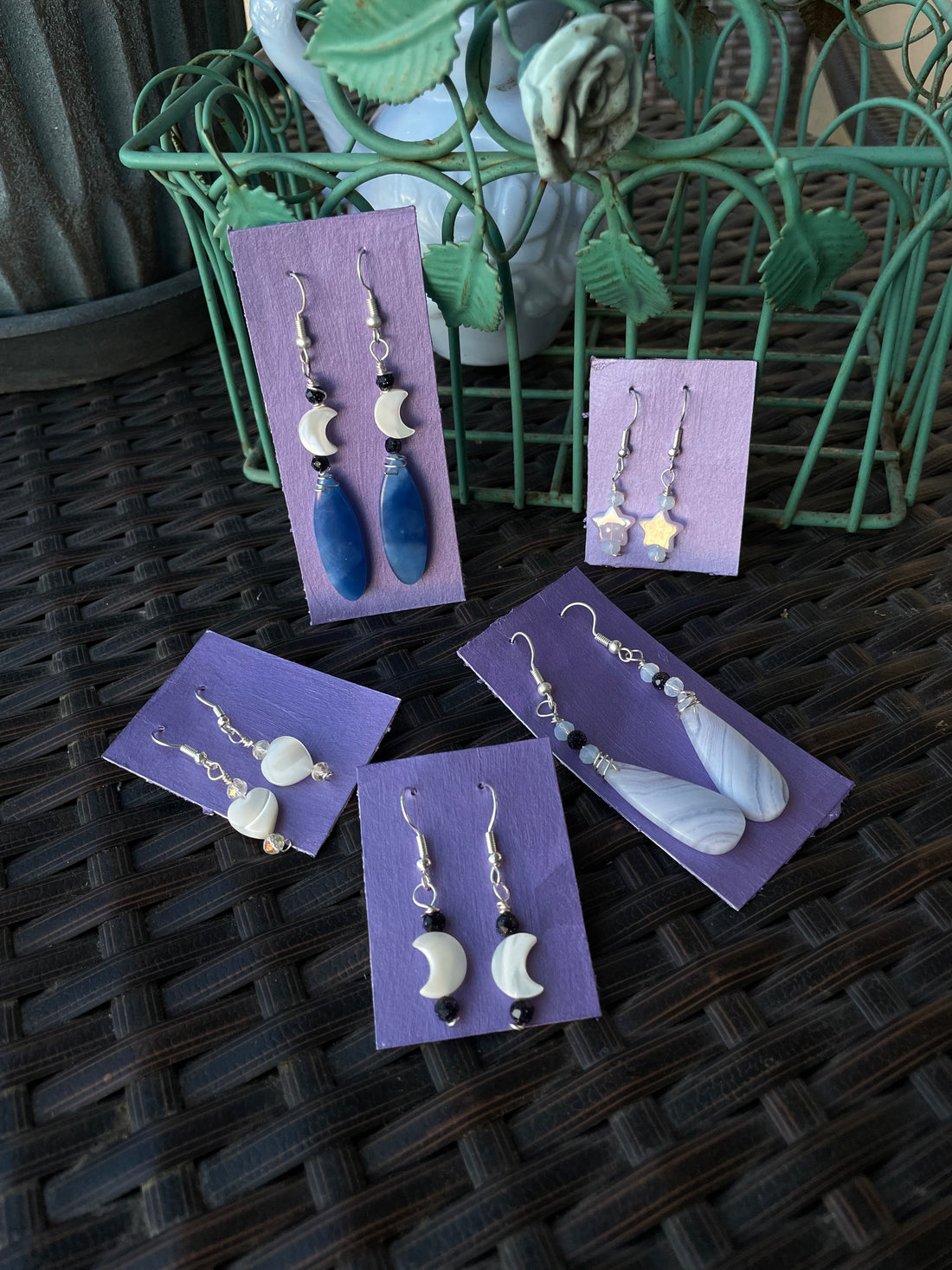 Blue Onyx Moon Earrings- Sold