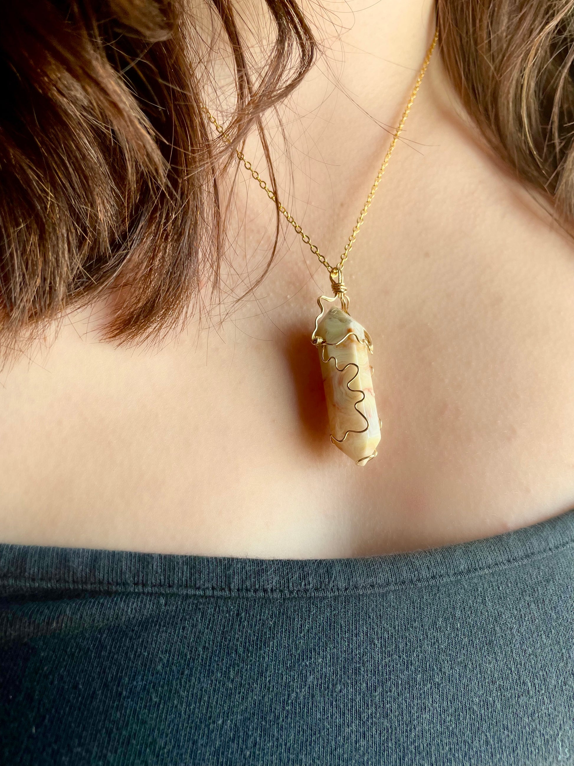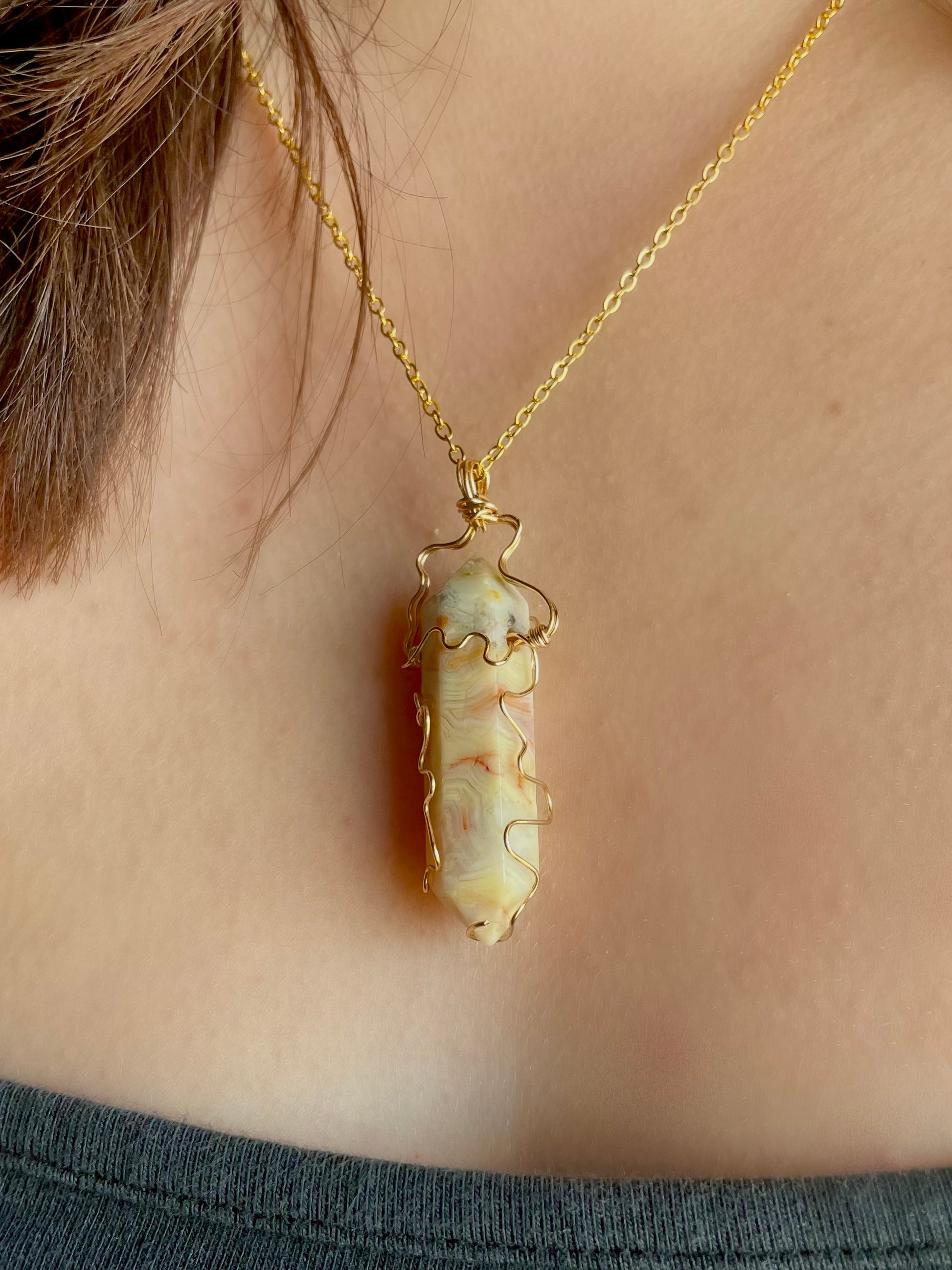 Capture the essence of whimsy with this Crazy Lace Agate charm, delicately wrapped in 20-gauge brass wire. This charming piece extends to a length of 2 inches, bringing a touch of elegance to your collection. Chain included! ✨🌈